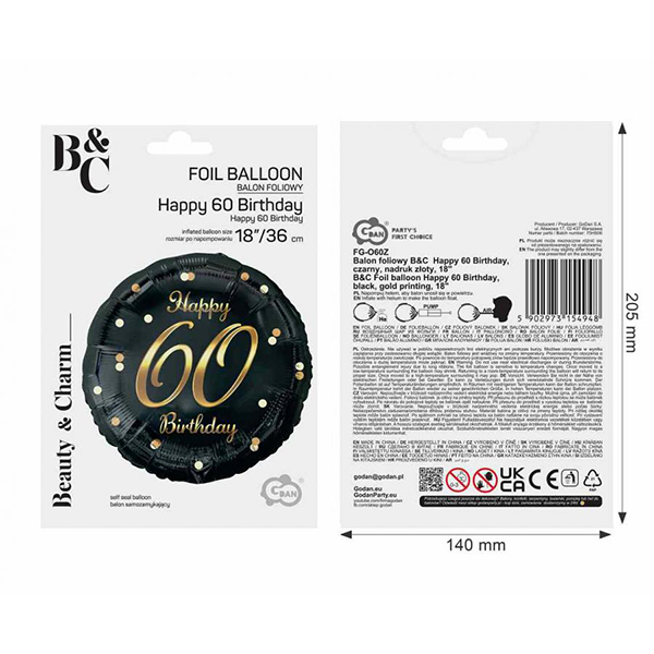 Търсите подарък за 60-ия си рожден ден? Организирате 60-ти рожден ден и искате да направите завладяващи погледа декорации? Отивате на рожден ден на 60-годишен и се чудите какъв подарък да изберете? Балон от черен фолио със златен принт Happy 60 Birthday ще бъде чудесен избор!