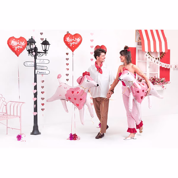 Фолиев червен балон Сърце с надпис ” I love you”, размер преди надуване прибл. 45 см (18”), размер след надуване прибл. 35 см (14”). Надуване с въздух и хелий. Комплектът съдържа сламка.