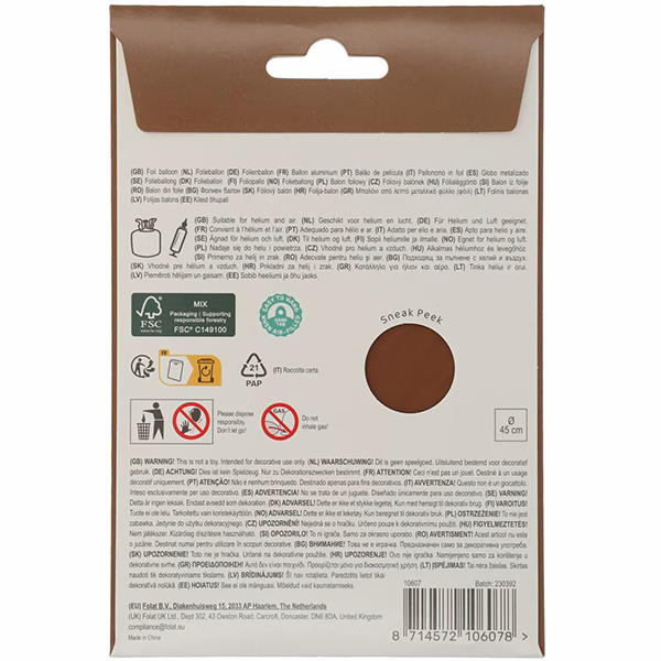 - Размери на балоните в сантиметри: приблизително 45 см