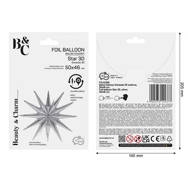 - Ефектен фолиев балон във формата на 3D звезда в сребрист нюанс.