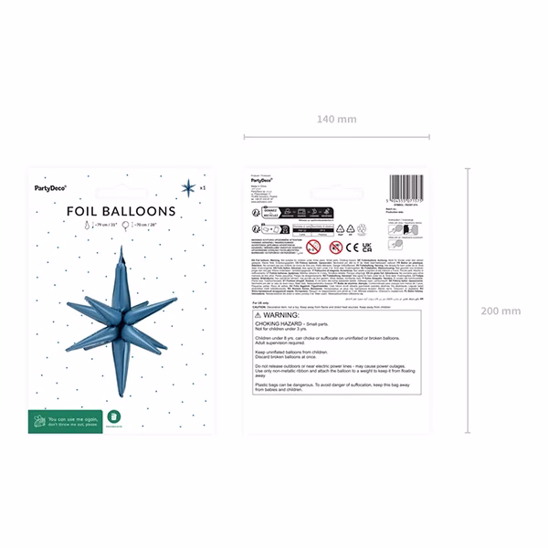 Луксозен блестящ балон от фолио звезда Star 3D в тъмносин цвят, диаметър прибл. 70 см (27,50″).