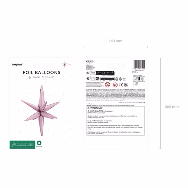 Луксозен блестящ балон от фолио звезда Star 3D в светлорозов цвят, диаметър прибл. 70 см (27,5″).