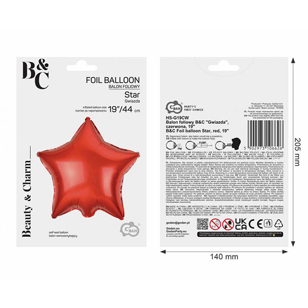 Фолиевият балон Red Star ще ви позволи да създадете атмосферен интериор за много поводи. Червен балон от фолио ще зарадва вашите гости и ще накара половинката ви да почувства романтична атмосфера! Благодарение на нашите балони можете лесно да създадете красива декорация на вашия апартамент или стая.