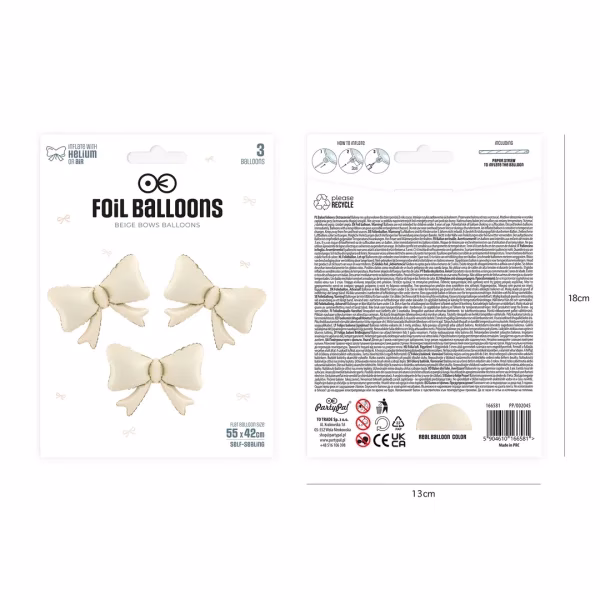 Фолиеви балони Панделки, бежови, 55х42 см, 3 броя