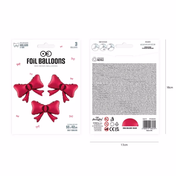 Фолиеви балони Панделки, червени, 55х42 см, 3 броя