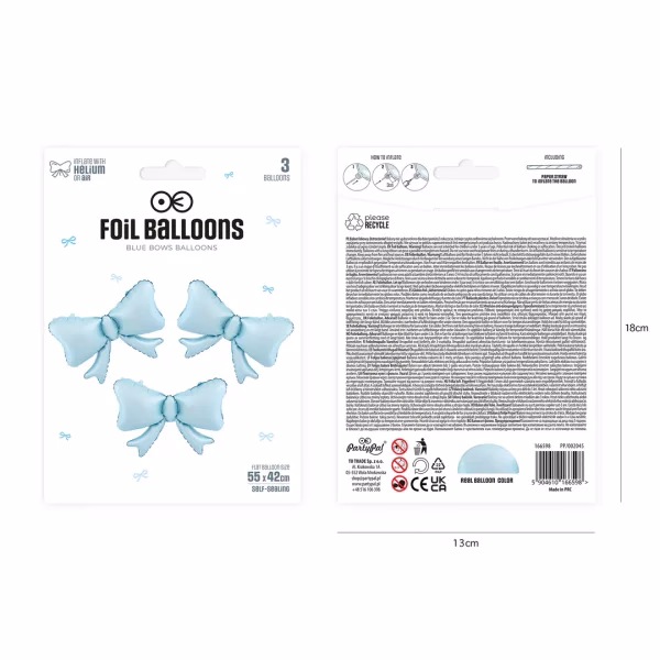 Фолиеви балони Панделки, сини, 55х42 см, 3 броя