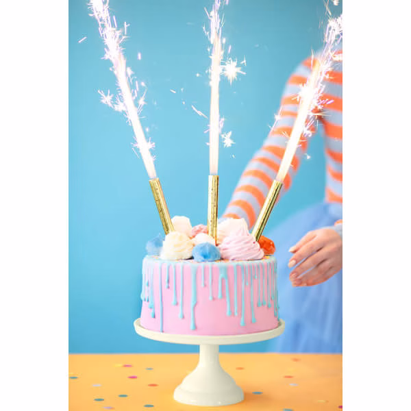 - Фонтанът на тортата идеално замества свещите за рожден ден.