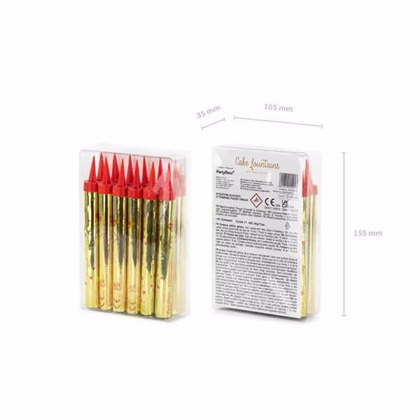 Фонтани за торта в златен цвят с червена шарка на звезди, височина прибл. 12 см.