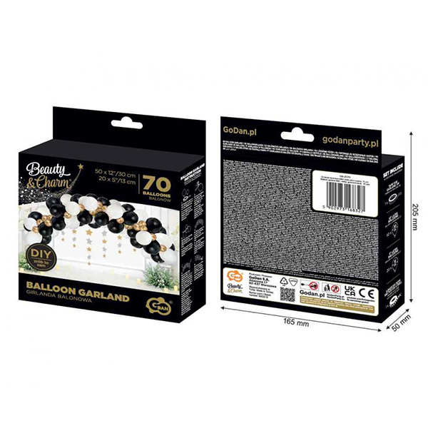 Гирлянд от балони B&C бяло-златно-черно, 70 бр.