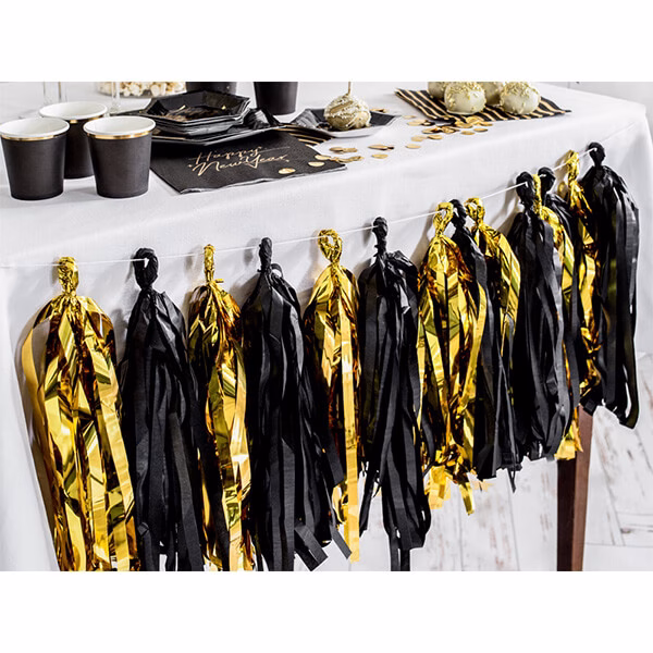 Гирлянд с пискюли Златно и черно, Тасели, 2 м., микс