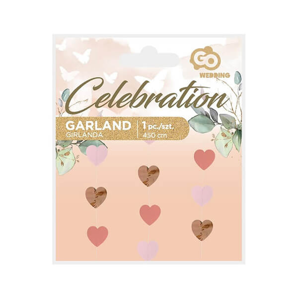 Гирлянд от хартия и фолио сърца в розови нюанси от колекцията GoWedding . Красива украса за сватбена церемония и прием, но също и за Свети Валентин, моминско парти и много други. Гирляндът е дълъг 4,5 метра , така че със сигурност ще го нагласите на всяко място.