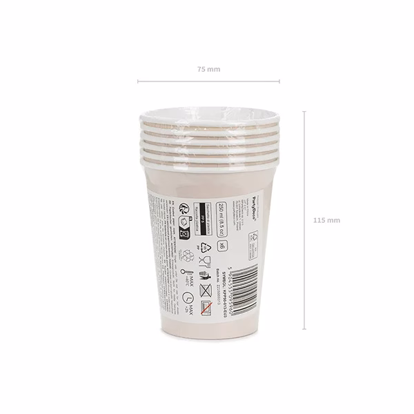 Картонени чаши, едноцветни, бежови, 250 мл, 6 бр.