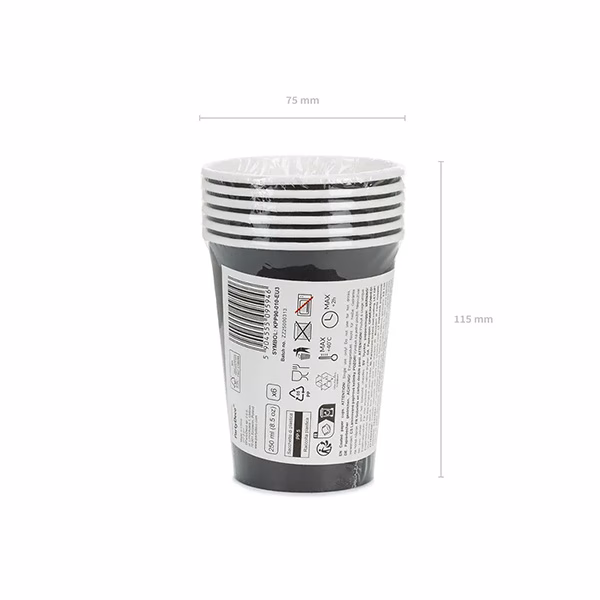 Картонени чаши, едноцветни, черни, 250 мл, 6 бр.