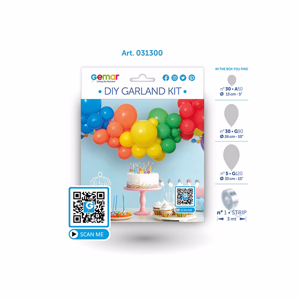 Балоните с гирлянд Gemar са качествени сами по себе си. И тези цветове! Трудно е да откъснеш очи от тях. Направи си сам гирлянд от балони е чудесен начин да започнете с декорации от балони, докато работите с продукти, използвани от професионалисти.