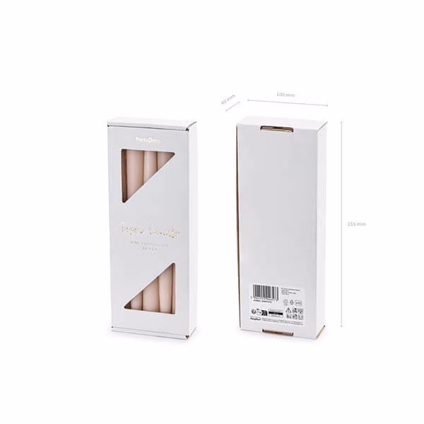 Конична дълга матова свещ в телесен цвят, 24 см, 10 бр. в комплект