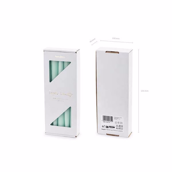 Конична дълга матова свещ в салвия цвят, 24 см, 10 бр. в комплект