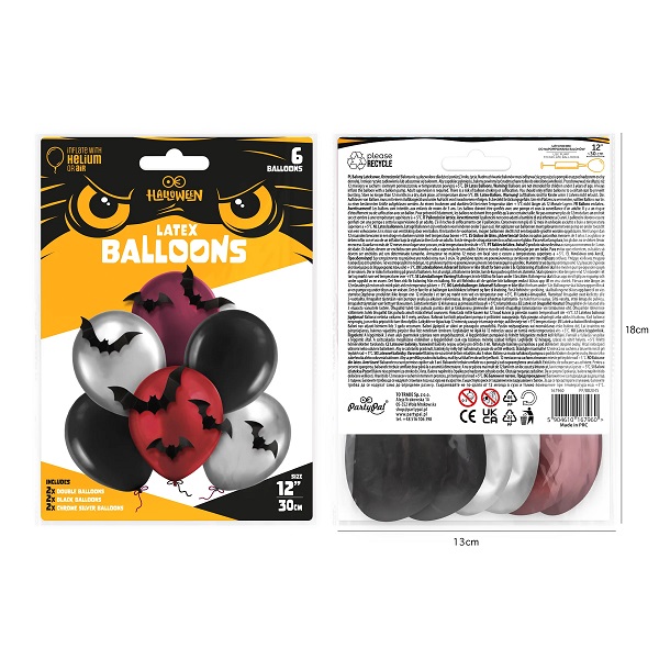 Латексови балони Halloween с прилеп, 12 инча, 6 броя, “Направи си сам”