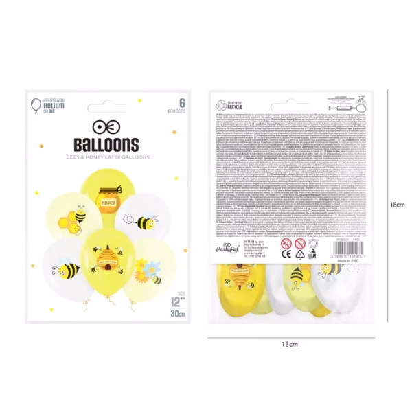 Този очарователен комплект включва 6 латексови балона с пчелички