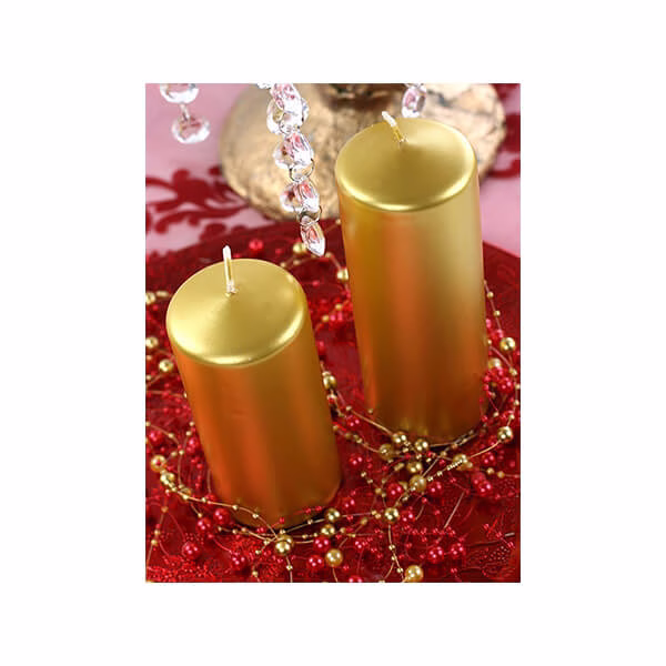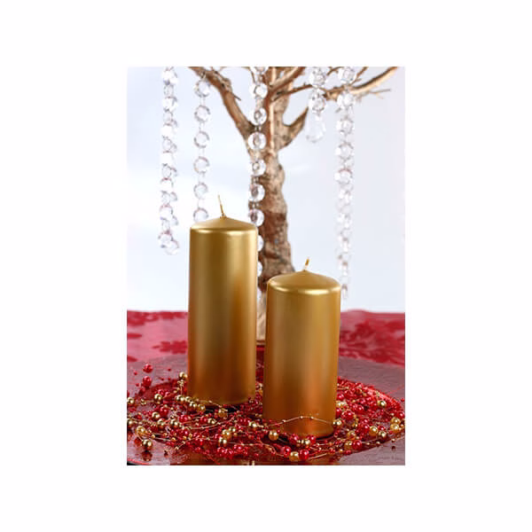 Металикова цилиндрична свещ, злато, 15 x 6 cm