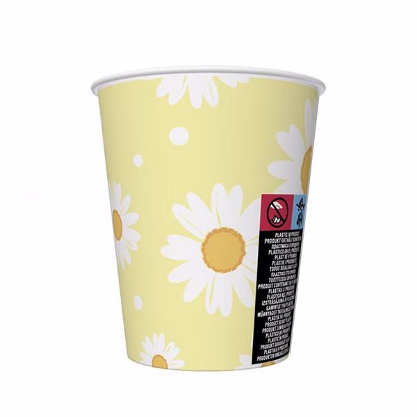 Картонени парти чаши жълти с бели маргаритки