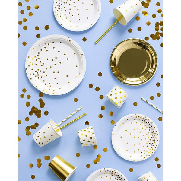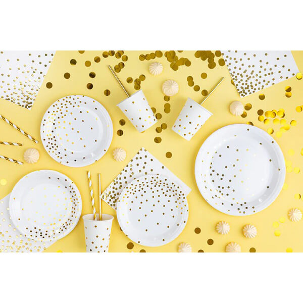 Картонени чаши със златни точки, бели, 6 броя, в опаковка
