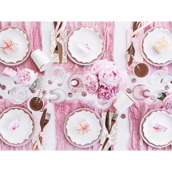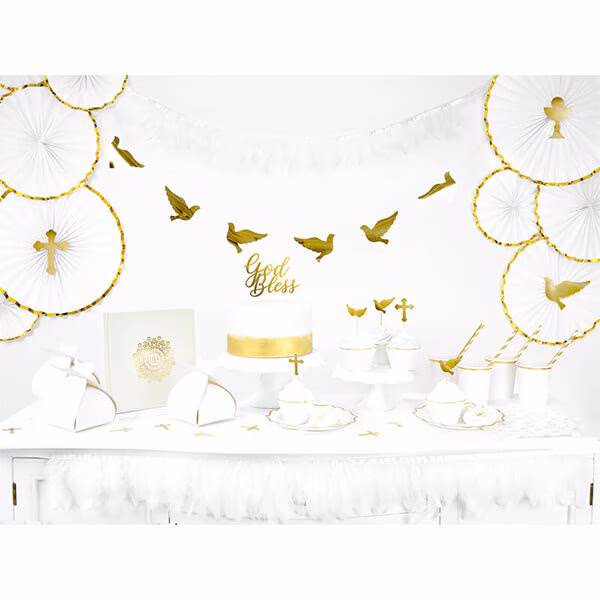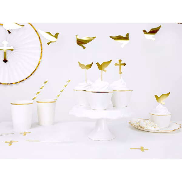 Луксозни бели парти чаши със златен кант, изработени от висококачествен картон. Прекрасно допълнение към съдовете за маса за рождения ден и други специални тържества и събития. Те също са леки и удобни , което със сигурност ще оцените, когато купонясвате на открито. Никой не се съмнява, че картонените чаши са по-безопасни от стъклените чаши и това е изключително важно, особено когато става въпрос за детско парти. Хартиените чаши също са несравнимо по-екологични, отколкото техните пластмасови варианти. Чашите за еднократна употреба не трябва да се озовават в кошчето, след като партито приключи.