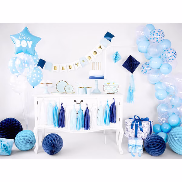Балони със слонче и бели точки, 30 см, пастелни, бебешко син микс, 6 броя