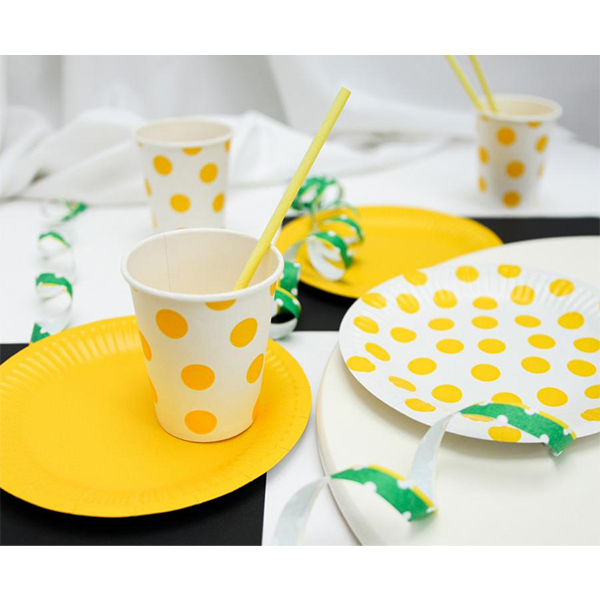Жълтите картонени чинии са чудесни както за топли, така и за студени ястия. Използвайте ги на рожден ден, барбекю, пикник и се насладете на предимствата им. Картонените парти чинии са леки, така че ги вземете със себе си, когато пътувате или на пикник, без да се притеснявате за допълнителното тегло.