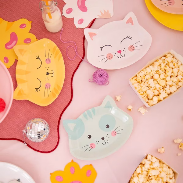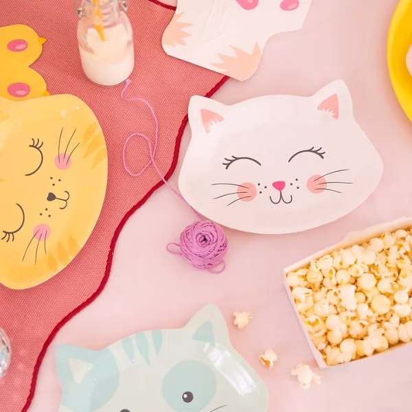 Картонени парти чинии със сладки котенца  20,5х15 см, 6 броя