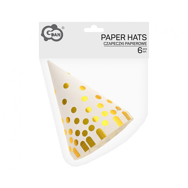 Парти шапки Златни точки, бели, 6 броя