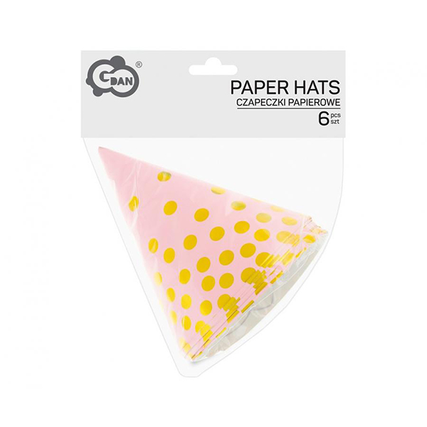 Парти шапки Златни точки, розови, 6 броя