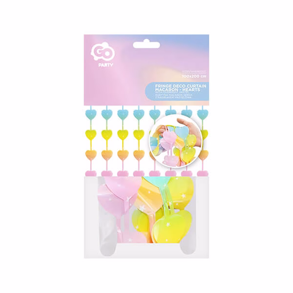 Парти завеса Макарон сърца с щампа, пастел, 100х200 см