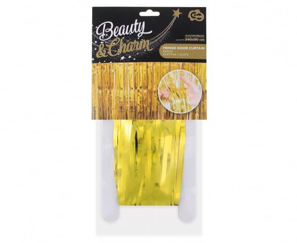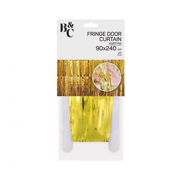Лъскава, парти декоративна завеса в златист цвят. Можете лесно и удобно да фиксирате завесата с лепящата лента отгоре. Достатъчно е да отлепите защитната хартия и да залепите завесата на избраното място. Силното и в същото време безопасно лепило ще ви осигури трайно фиксиране на завесата и същевременно безпроблемно сваляне. Благодарение на подходящата дължина от 240 см, можете да регулирате завесата на всяка врата, стена и други места.В същото време това е оптималната дължина, така че завесата няма да се заплита под краката и да събира прах от пода. Декоративната завеса е ефектна декорация за рожден ден, домашно парти, както и за фон на феноменална стена за правене на снимки на сватба, моминско парти и други събития. Използвайте ги, за да покриете част от апартамента, която “разваля” външния ви вид (например поради ремонт) или да го закачите на вратата, за да впечатлите приятелите си. „УАУ!“ гарантирано!