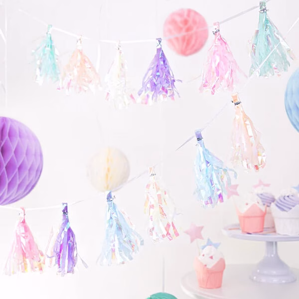 Красив, изискан и стилен гирлянд от пискюли преливащи цветове, който перфектно замества традиционните гирлянди и банери.