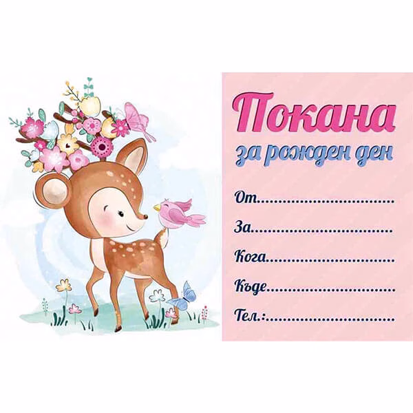 Покани за рожден ден Еленче с цветя, 10 броя