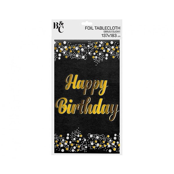 Покривка за маса Happy Birthday, Черно и златно, B&C, 137×183 см