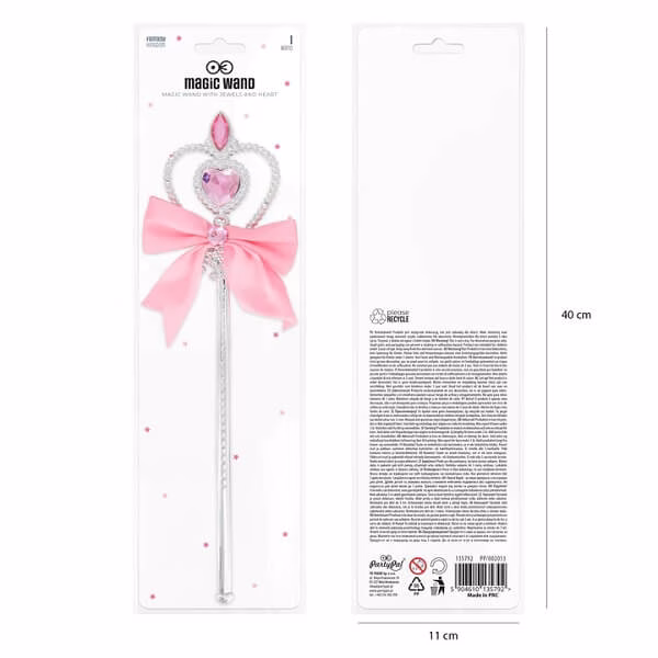 Сигурно почти всяко малко и голямо момиче мечтае за момент да се почувства като истинска принцеса от приказка! Красив костюм на принцеса и необходимите аксесоари могат да й помогнат да се превърне в принцеса за една нощ! Изработена от пластмаса в сребрист цвят, пръчката на принцесата с рубин ще бъде идеално допълнение към карнавален тоалет на бал в детска градина или училище, на детски рожден ден или парти за Хелоуин, както и необходима джаджа на принцеса парти! Благодарение на пръчката ще можете да измислите всичко, което пожелаете.
