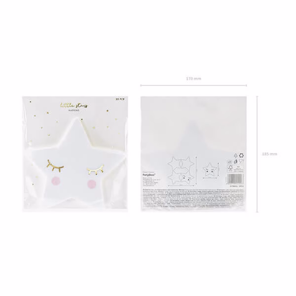 Луксозни хартиени салфетки във формата на звездичка със сладко личице, в бял цвят подходящи за бебешко парти, кръщене, парти изненада, бебешка погача или рожден ден.