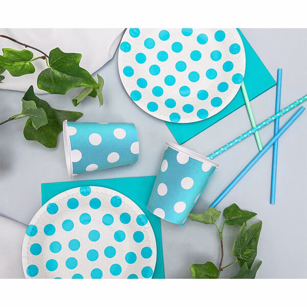 Сини парти чаши на бели точки, 6броя в опаковка