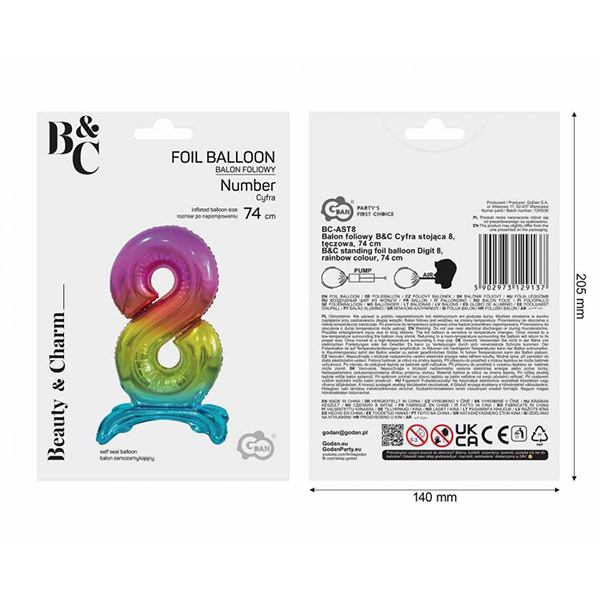 Стоящ фолио балон Цифра 8, B&C, дъга, 74 cm