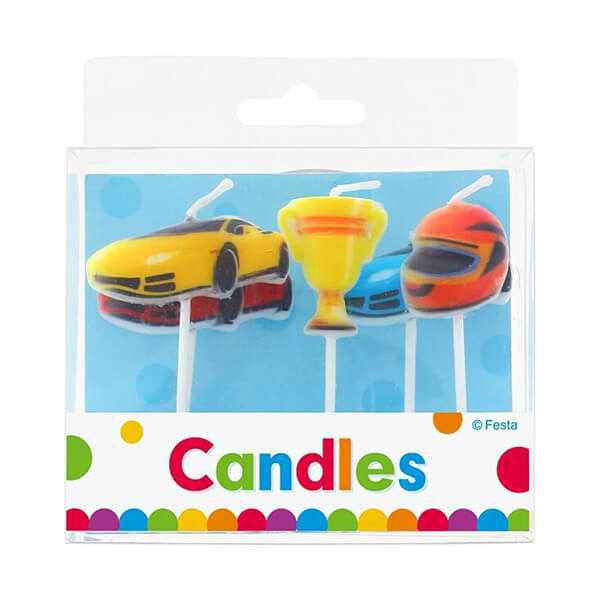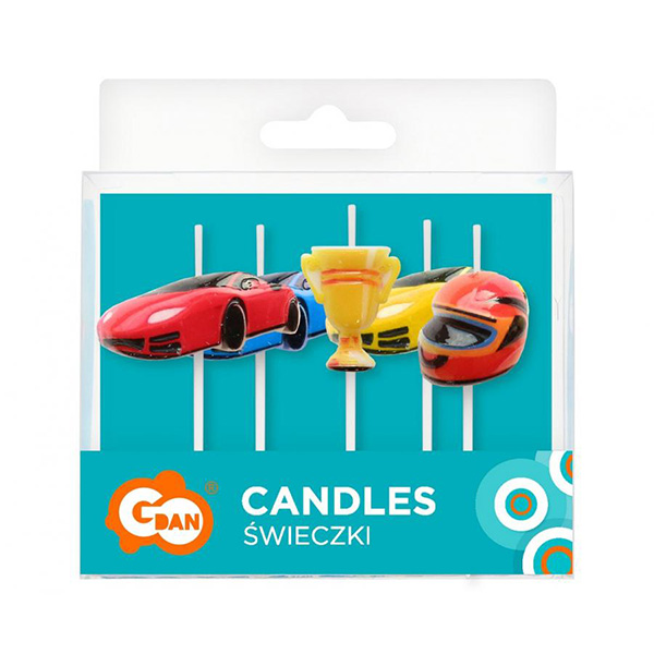 Цветни внимателно изработени свещи за шампиони, с формата на автомобили и купа на победител