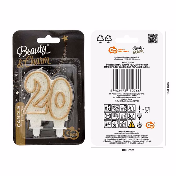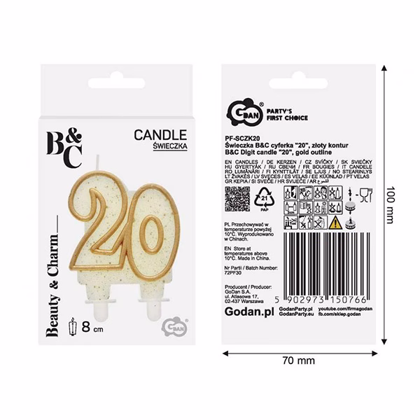 Свещ цифра 20, B&C номер 20, златист контур