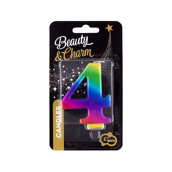 Свещ цифра 4, дъга, Galaxy, 8 cm
