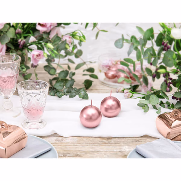 Свещ кръгла восъчна топка, розово злато металик, 6 см