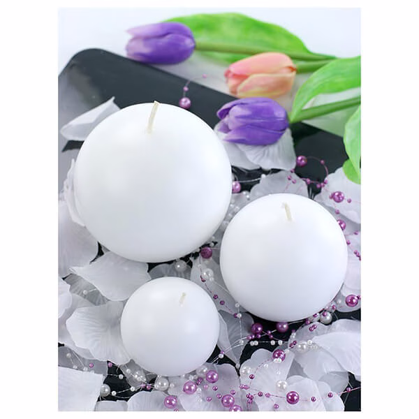 Тази бяла матова свещ е с диаметър 6 см , което я прави идеалния размер за използване като декоративен елемент на маса, скрин, рафт или като център на атмосферна аранжировка. Формата на топка и придава уникален характер, което я прави чудесна алтернатива на традиционните конусовидни или цилиндрични свещи.