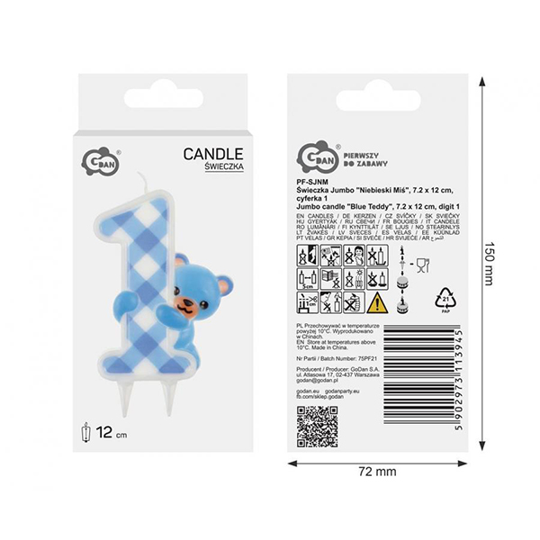 Свещ номер 1 с голямо синьо плюшено мече е идеалното решение за първи рожден ден 🙂