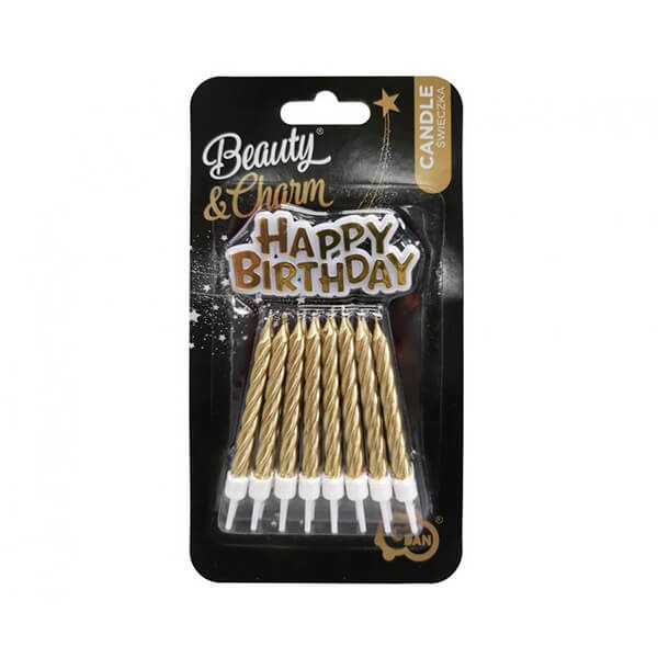 СВЕЩИ ЗА РОЖДЕН ДЕН “Happy Birthday”, златни – 16 броя