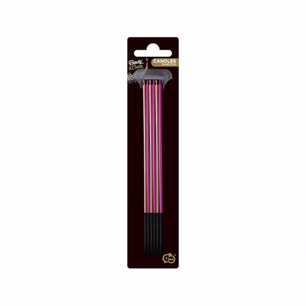 Дълги красиви свещи за торта (17см ) в цвят сребро и пурпурно лилаво. Благодарение на тези свещи можете да украсите всяка торта, като й придадете елегантност и разкош! Запалете свещите и разпалете емоции на рождени дни, момичешки партита, годишнини от сватбата или романтична вечеря за двама.