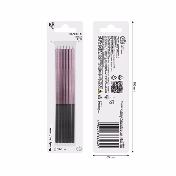 Дълги (14,5 см), люлякови платинени свещи за торта. Благодарение на тези свещи ще преобразите всяка торта, като й придадете елегантност и разкош! Запалете свещи и разпалете емоциите на рожден ден, моминско парти, годишнина от сватба или романтична вечеря за двама.