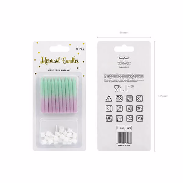 Свещи за рожден ден Ombre, преливащи, 6 см, 20 броя